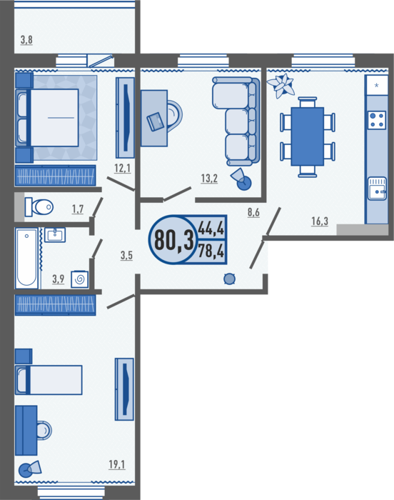 3-комнатная квартира 80.3 м²